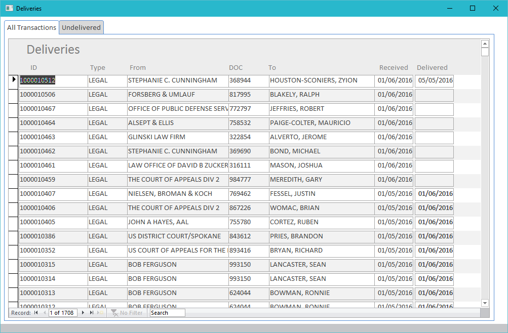 All Transactions tab – shows all inbound transactions and when they were delivered.