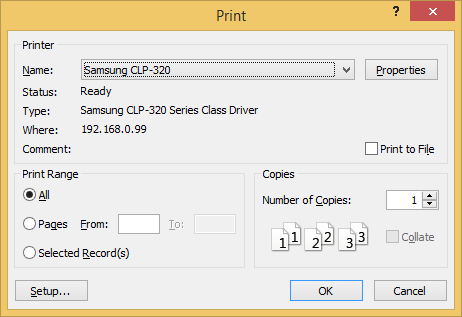 Use the Ctrl – P keyboard selection to print the form or selected records.