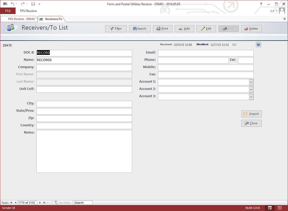 Import – if the facility provides a list of updated inmate movements they may be imported by clicking the import button.